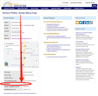 To put these numbers in perspective, consider the number of students enrolled at the school where I teach. According to the California Department of Education profile, total enrollment at Santa Maria High School is 2720.